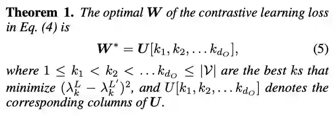 随后我们证明了定理1(具体证明可见论文附录),通过定理1,可以得到一个结论就是当采用非对称的视图编码器时,最优化问题的最优解W只由图滤波矩阵和其特征值决定,和GCL引入的数据增强无关。相反,如果采用对称的视图编码器结构,可以证明最优解不但和滤波矩阵有关,还和引入的数据增强有关,就会把数据增强中可能对图性质造成破坏的噪声引入到图表征中。