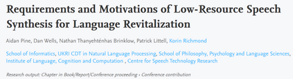 标题:Requirements and Motivations of Low-Resource Speech Synthesis for Language Revitalization