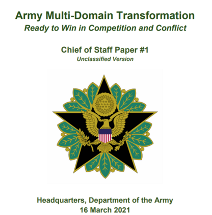 《陆军多域转型》描述了美国陆军必须转型以加强其核心能力并成为一支多域部队的原因与方式,在正确的地方拥有正确的能力,以使联合部队从竞争到冲突中获胜。它进一步描述了2018年首次发布的多域作战概念在竞争、危机应对和冲突中的应用,以支持联合全域作战。
