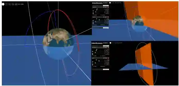 图1:选定在轨空间物体异常前最后正常观测的推算轨道与异常后轨道的平面变化对比。