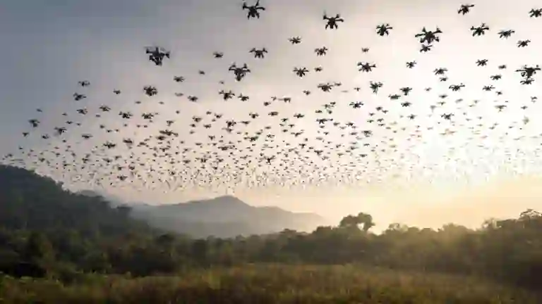 红方500架无人机则通过协同评估以1:1比例分配目标,节省弹药并最小化附带损伤。其核心非单机而是群体——借群体智能如蚁群、蜂巢乃至黏菌般自组织,达成《星际迷航》博格人或《安德的游戏》虫族式的"群体心智"。即便与后方通讯中断,仍通过临时短距连接保持作战态势同步。