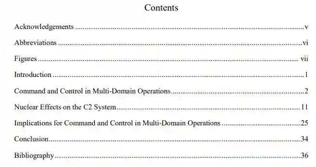 本专著首先回顾了MDO概念、联合全域指挥与控制,以及陆军C2系统的四个组成部分:人员、指挥所、网络和流程。然后,该专著将描述核危险,并按照联邦应急管理署(FEMA)使用的灾害风险评估方法的修改版评估其对C2系统的影响。它的结论是对陆军军团在核战场上C2 MDO能力的影响。