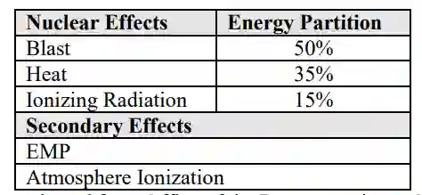 如图2所示,核武器释放的巨大能量被划分为三种主要效应:爆炸波、热量和电离辐射。电磁脉冲(EMP)和大气电离是次要效应,对人类无害,但会使C2退化。