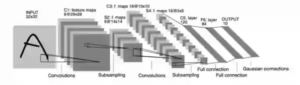 LeNet-5 是最早的卷积网络架构之一,于 1998 年用于文档识别。LeNet-5 由 3 个部分组成:2 个卷积层、2 个子采样或池化层和 3 个全连接层。卷积层中没有激活函数。 正如论文所说,LeNet-5 已进行商业化部署,每天读取数百万张支票。下面是 LeNet-5 的架构。该图像取自其原始论文。