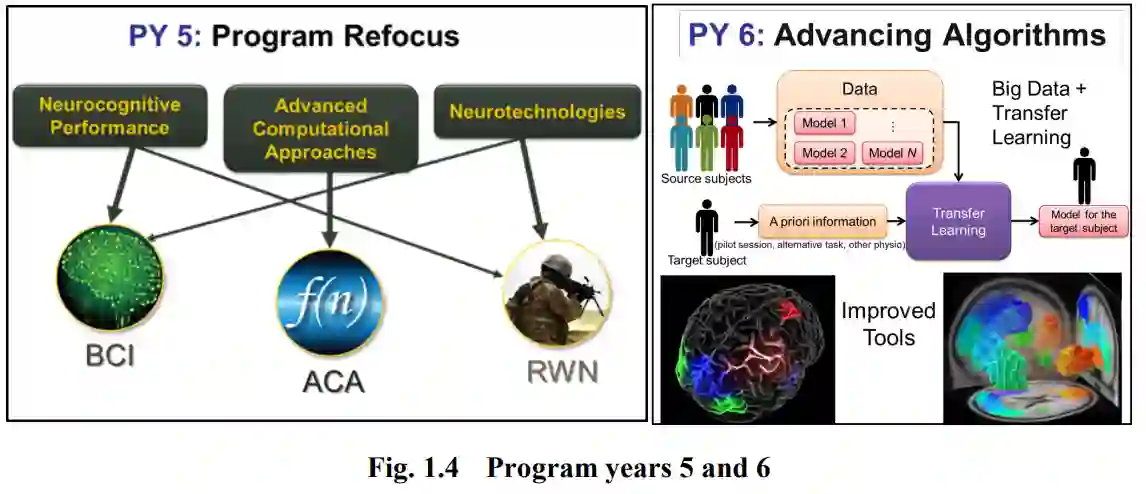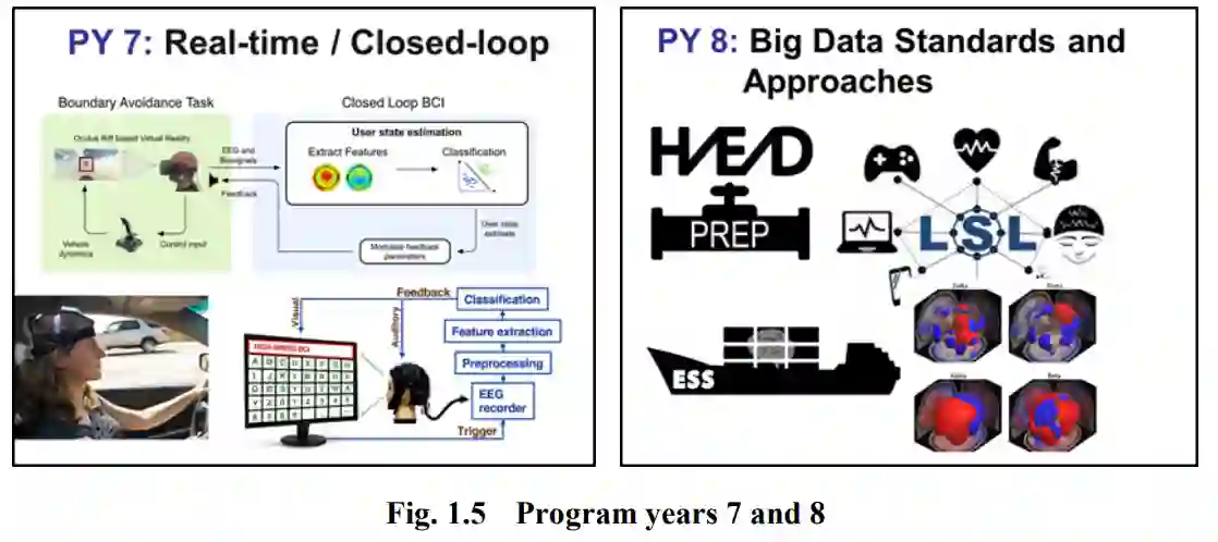 计划第 7-8 年:这一阶段的重点是稳健型 BCIT(图 1.5)。这项工作在闭环 BCI 系统方面取得了可喜的研究成果,为利用实时神经活动优化人机系统联合性能奠定了基础。与此同时,随着合作者们继续处理大量不同的 RWN 数据(主要包括脑电图和其他表面传感器数据),标记和预处理的方法也得到了标准化,从而为更广泛的研究社区带来了益处。