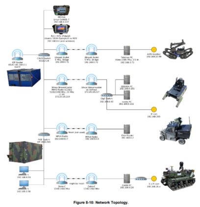 这两项工作都使用了无人系统联合架构(JAUS)和互操作性配置文件(IOP),以成功实现系统间的互操作性。试验表明,有可能相当容易地扩展系统,并在相对较短的时间内实现与部分标准的兼容。弗劳恩霍夫FKIE和TARDEC都开发了软件,将信息从IOP域传递到机器人操作系统(ROS),并从该系统中获取信息。ROS是一个广泛使用的软件,用于开发UGV和其他类型机器人的自主性,并被该小组的许多合作伙伴所使用。Fraunhofer FKIE和TARDEC提供的软件对试验的成功至关重要。