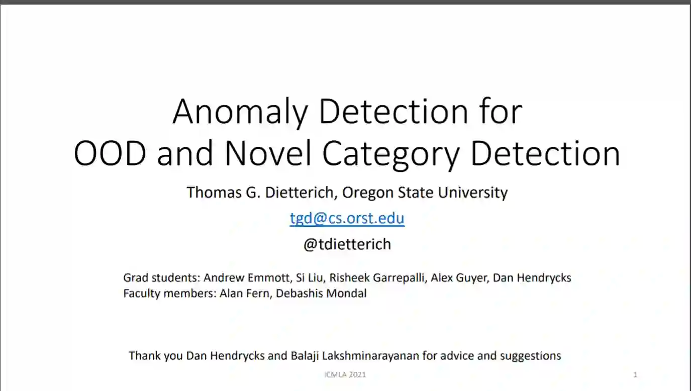 2021年10月,俄勒冈州立大学计算机科学名誉教授、被认为是机器学习领域的先驱之一的Tom Dietterich在亚马逊的年度机器学习大会上发表了主旨演讲。