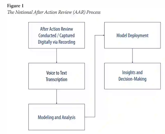 事后分析(AAR)在军队和组织中用于评估事件及其相应的培训成果。团队讨论提供了一种以学习为中心的方法,用于评估表现、分析失败或对未来活动可能的改进。有用的信息经常以非结构化文本和语音的形式嵌入这些 AAR 中。本文提出了一种对 AAR 进行数字分析和趋势分析的解决方案。讨论了使用手持设备采集数据的解决方案。此类设备可将音频输入数据管道,在管道中进行语音到文本的处理。音频处理的操作方法是识别音素等原始语言成分,并对其关系进行上下文建模,以识别最有可能的文本输出。然后,将讨论语音到文本的转换以及自然语言处理 (NLP) 在分析中的应用。NLP 技术可发现非结构化文本中的语义模式,然后将其与团队绩效指标相关联。通过揭示 AAR 与团队表现之间的成功促进因素,这种趋势可以优化军事训练课程。