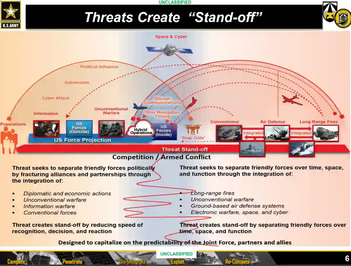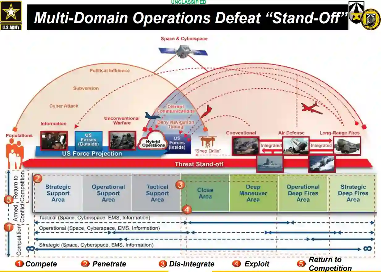 美国陆军的作战概念(AOC)是多域作战(MDO)概念。它于2018年12月6日作为美国陆军训练与理论司令部(TRADOC)文件525-3-1(TP 525-3-1)《美国陆军2028年多域作战》发布。鉴于目前陆军现代化战略的重点是在2028年之前建立一支具备多域作战能力(MDO-Capable)的部队,以及在2035年之前建立一支准备就绪的多域作部队(MDO-Ready),陆军未来司令部(AFC)要求整个陆军现代化企业(AME)采取创新和高效的方法,促进对TP 525-3-1内容的全面理解,以便在制定理论、组织、训练、物资、领导和教育、人员、设施和政策(DOTMLPF-P)的解决方案来解决多域作战问题时应用多域概念的基本组成部分。了解MDO概念还可以提高内部和战略沟通能力。