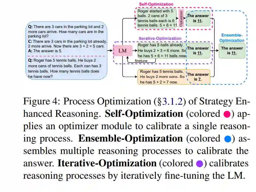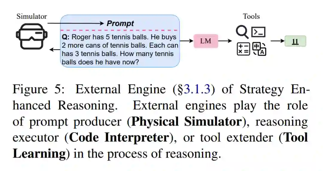 这方面工作的主要目的是设计更好的推理策略,具体体现在提示工程(§3.1.1)、流程优化(§3.1.2)和外部引擎(§3.1.3)中。