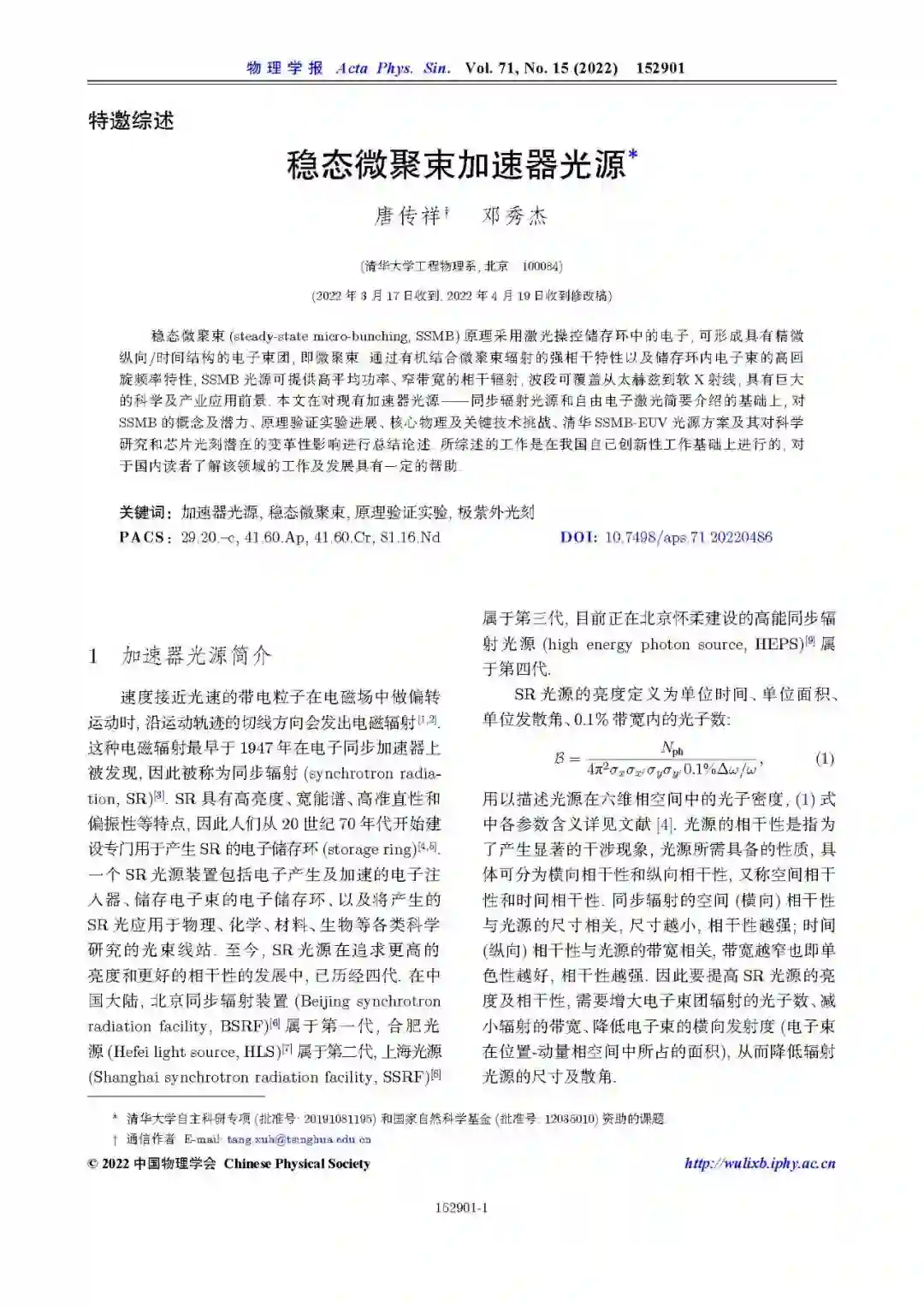 唐传祥,邓秀杰 物理学报, 2022, 71(15): 152901. doi: 10.7498/aps.71.20220486 原文链接
