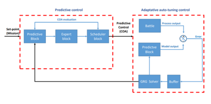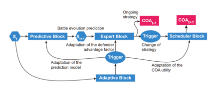 图3.2开发了迭代触发特定COA选择的基本要素。预测块产生预测演变。适应性模块根据输出信号(实际情况)与预测信号的差异调整组成模块的参数,并适当地更新最后执行的COA。专家区块试图通过调度区块修改预测区块定义的趋势,从而按照战斗的需要改变行动路线。值得注意的是,设定点与完成任务有关,行动的发展时间是操作时间,在最好的情况下,有冲突信息的可用数据库通常是以天为单位的时间演变。