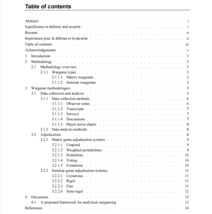 本文来自于对现有学术文章、游戏报告和会议记录的文献回顾。它还得到了美国、英国和加拿大的兵棋推演从业者的访谈数据的补充。此外,本文并不是对DRDC--作战研究和分析中心(CORA)或其他机构的现行做法的批评;相反,它只是代表了某种可以补充现行做法的分析性兵棋推演框架。