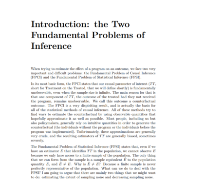 这意味着: 了解编码因果关系的基本语言,了解推理的基本问题和直觉估计的偏差,了解计量经济学方法如何恢复治疗效果,能够计算这些估计值连同估计精度使用统计软件R。 这本书是为教学因果推理的研究生,希望运用因果推理的统计工具。提供了理论结果的演示,但最终目标不是让学生再现它们,而主要是使他们更好地理解他们将使用的工具的基础。重点是理解问题和解决方案,而不是理解后面的数学,即使数学存在并被用来严格地传达概念。所有的概念和估计值都是用一个数值例子和模拟来介绍的,以便每个概念都被说明,并显得更直观的学生。
