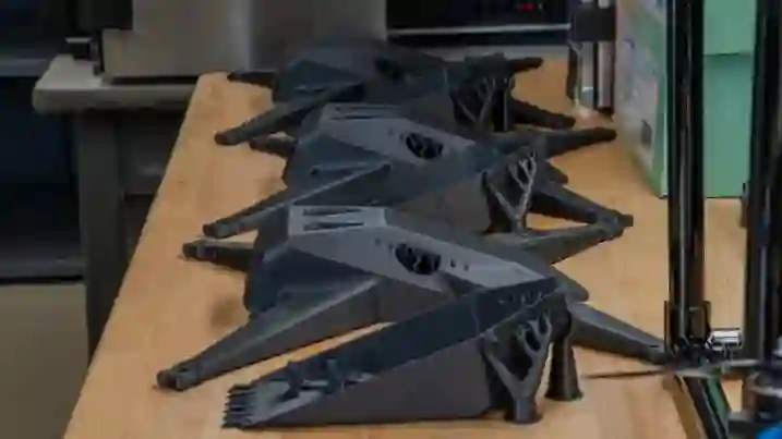 图:2025年7月9日,位于德克萨斯州胡德堡的第一骑兵师概念和能力实验室,新打印的小型无人机系统框架放在工作台上。美国陆军