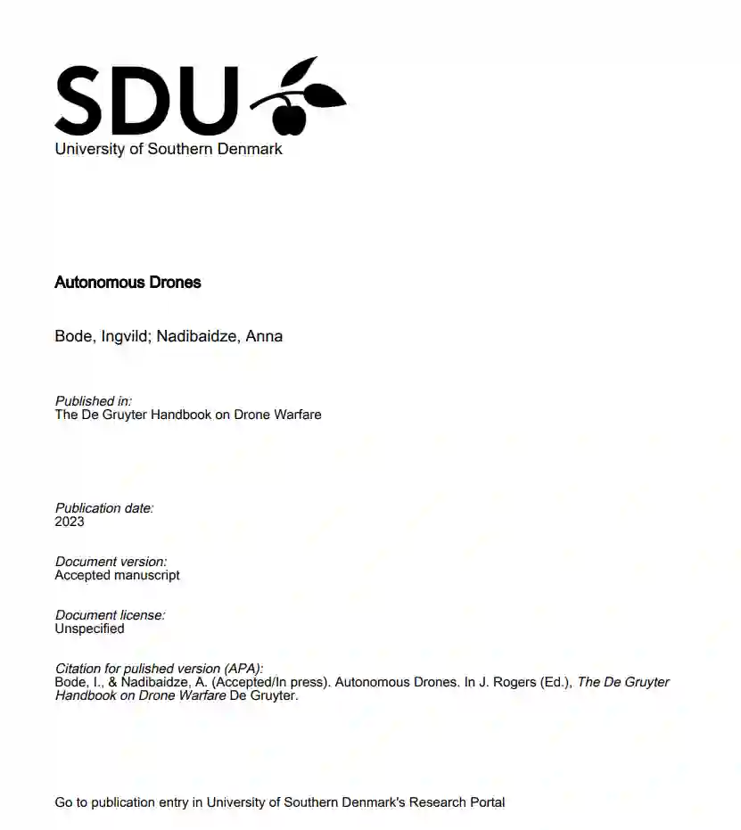 人工智能(AI)的进步一直在激发关于应用基于AI的技术来提高武器系统(包括空中无人机)的自主水平的辩论。2021年,一份联合国报告显示,一架无人机以完全自主的模式--没有人类的监督--用于攻击利比亚的目标。具有自主功能的无人机已经扩散了一段时间,并在一些武装冲突中被使用。军方对开发和获取游荡弹药、蜂群技术和更大型号的自主无人机越来越感兴趣。在这一章中,我们探讨了这些领域的每一个发展。我们还考虑了无人机自主性的感知优势以及与具有自主功能的武器系统相关的实践挑战,特别是在人机互动和武装冲突中人类对武力使用的控制质量方面。