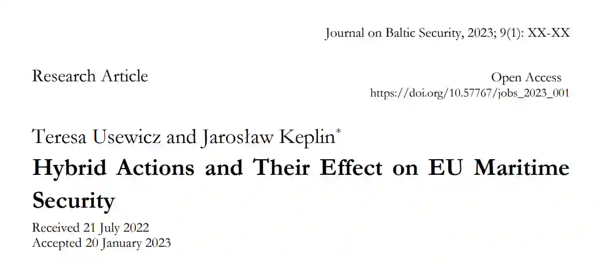 本文讨论了欧盟海上安全所面临的混合挑战。虽然混合威胁问题通常在科学文献中被广泛报道,但作者指出,它们与欧盟海上安全问题的结合是一种新的研究策略。文章认为,海洋空间对欧盟成员国的繁荣和安全至关重要。作者提出了将海洋环境作为混合影响的场所的潜在应用。所进行的研究结果对于确定欧盟和各成员国的安全和安保政策的发展方向至关重要。关注利用海洋空间进行混合战争的可能性是有效反应的必要条件。正确的威胁识别需要监测和许多行为者的合作。