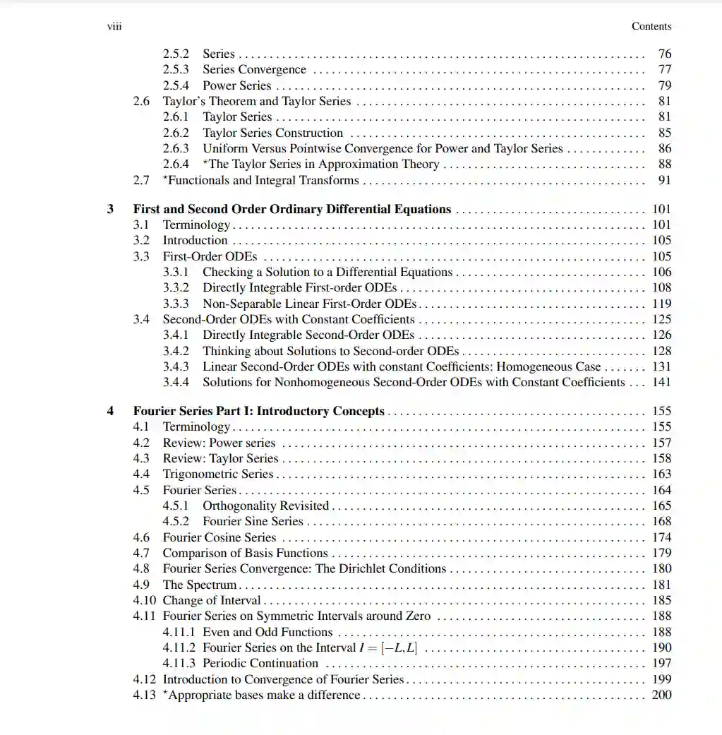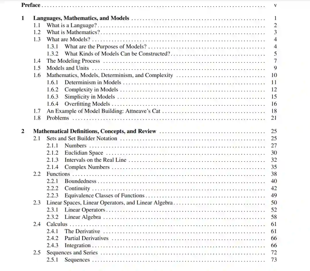 一本为工程和科学专业学生编写的应用数学导论。重点在于通过讨论、类比和实例来展示严谨的介绍,同时建立理解。讨论涉及建模物理过程的概念是本书的核心主题。本书更新了关于前馈神经网络的新章节。 科学家和工程师从定义上来说,就是问题解决者。但是,思考他们是如何成为问题解决者的问题颇为有趣。虽然在学术生涯的早期,可能会上一门课程,其标题中包含“问题解决”这样的词语,但这不太可能是学生普遍学习如何实际解决问题的地方。工程师和科学家如何学习他们最终所知的主题是教育研究领域的一个问题。虽然这个问题过于宽泛,无法在这里讨论,但关于数学在教育过程中的应用确实是相关的。对于任何曾经学习(或教授)过数学的人来说,“但是,我什么时候会用到这个?”这句话是耳熟能详的。这突显了数学呈现方式中的一个特殊问题。在学习诗歌时,例如,很少有人会问:“但是,我什么时候会用到这首诗?”。当我们考虑为什么数学被视为不同于诗歌等其他学科时,问题开始变得清晰。学习者通常期望数学在实际应用中具有很大的用途。这种期望是可以理解的,因为我们早期的数学训练(如学习加、减、乘法;解决基本的代数问题)具有非常明显的实用性。通常在引入更高层次的数学思维时(如形式线性代数、微积分、微分方程),问题的实用性才会出现。