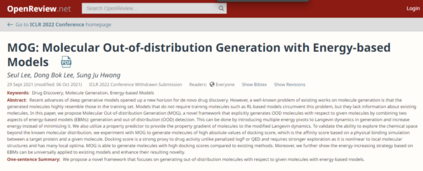 参考资料 Lee S, Lee D B, Hwang S J. MOG: Molecular Out-of-distribution Generation with Energy-based Models[J]. 2021.