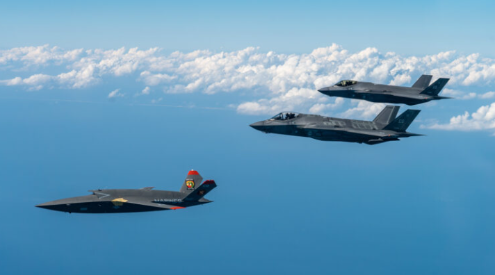 图:两架美空军F-35A与海军陆战队XQ-58A“女武神”进行测试飞行。图片来源:技术军士约翰·麦克雷尔通过DVIDS发布。