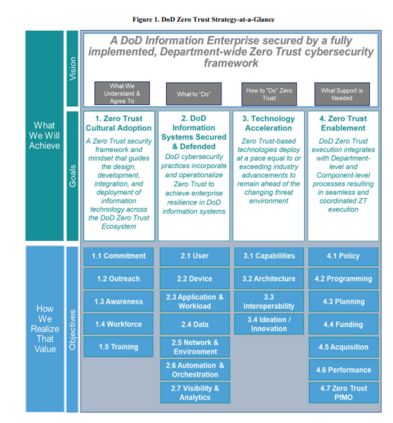 该战略概述了四个高层次的综合战略目标,确定了该部为实现其零信任愿景将采取的行动。