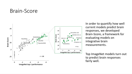 简介: 尽管最初受到大脑解剖学的启发,但在过去的几年中,这些人工神经网络已经从AlexNet中的简单的八层体系结构演变为更加复杂的体系结构,由于机器学习的典型深层模型的层数众多且缺少生物学上重要的连接,因此通常难以映射到大脑的解剖结构。在这里,我们证明,与大脑更好的解剖结构对齐以及在机器学习以及神经科学措施方面的高性能不一定是矛盾的。我们开发了CORnet-S,这是一种浅神经网络,具有四个解剖学映射的区域和经常性连接,并在Brain-Score(一种新的大规模的神经和行为基准测试组合)的指导下进行了开发,用于量化灵长类动物腹侧视觉流模型的功能保真度。尽管比大多数模型要浅得多,但CORnet-S是Brain-Score上的顶级模型,其性能优于ImageNet上类似模型。此外,我们对CORnet-S电路变体的广泛分析表明,是Brain-Score和ImageNet top-1性能的主要预测因素。最后,我们报告了CORnet-S“ IT”的时间演变 神经种群类似于实际的猴子IT种群动态。综上所述,这些结果使CORnet-S(一种紧凑的循环神经网络)成为灵长类动物腹侧视觉流的当前最佳模型。