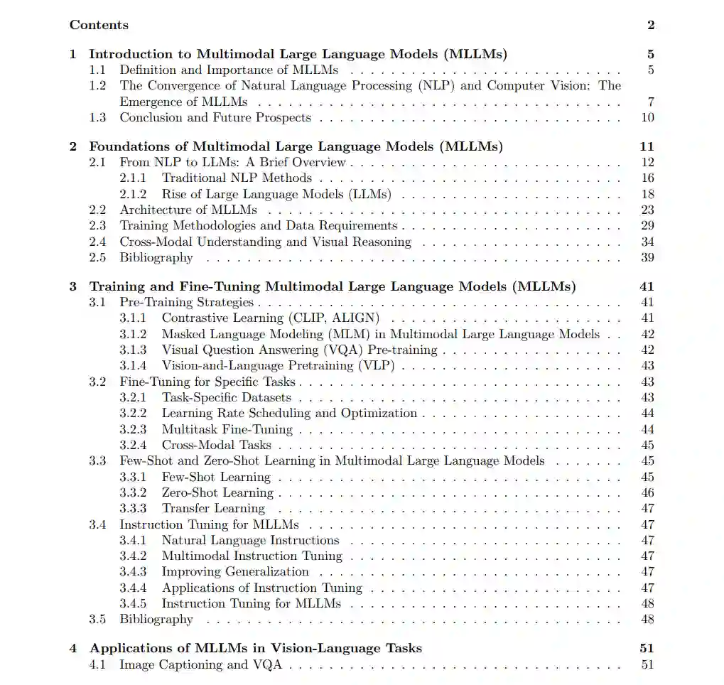 多模态大型语言模型(MLLMs)代表了人工智能技术的重大飞跃,弥合了不同信息处理模式之间的差距,使我们更接近于开发出能够更像人类一样理解和与世界互动的AI系统。MLLMs同时整合和处理多种类型数据的能力,拓展了其在各个行业和领域中的广泛应用前景。 展望未来,MLLMs的潜在影响广泛且具变革性: * 在医疗领域,MLLMs能够通过整合视觉医学数据、文本化的患者病史和最新研究成果,彻底革新诊断和治疗规划。例如,MLLM可以分析患者的MRI扫描、病史和最新的医学文献,以建议个性化的治疗方案。 * 在教育领域,这些模型可以通过根据学生的多模态互动来调整内容,创造更加引人入胜和个性化的学习体验。基于MLLM的辅导系统可以根据学生的口头回应、面部表情和在视觉任务中的表现来调整教学风格。 * 在科学研究中,MLLMs可以通过分析复杂的多模态数据集并识别可能被人类研究者忽略的模式,加速科学发现。例如,在气候科学领域,MLLM可以整合卫星图像、气象数据和科学论文,以识别气候变化中的新模式。 * 在创意产业中,MLLMs可以成为内容创作的强大工具,推动互动性和沉浸式叙事的新形式。设想一款能够根据玩家的行为和偏好生成独特故事情节和视觉内容的视频游戏。