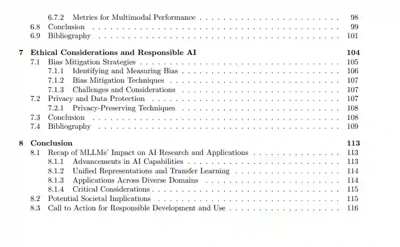 然而,在我们拥抱MLLMs的潜力的同时,也必须警惕其带来的挑战。解决偏见问题、确保道德使用、提高效率和增强可解释性将是充分实现这些强大模型潜力的关键。 对研究人员和实践者的行动呼吁: * 开发强有力的技术来减轻多模态数据集和模型输出中的偏见。 * 创建更高效的MLLM架构,以减少计算需求和环境影响。 * 探索改进MLLM输出的跨模态一致性和连贯性的新方法。 * 研究MLLMs与其他新兴技术(如增强现实和物联网)的集成。 * 制定跨行业开发和部署MLLMs的伦理准则和最佳实践。