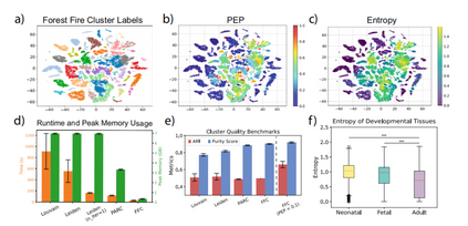 审稿 | 王娜 本文介绍由美国耶鲁大学统计与数据科学系的Mark Gerstein通讯发表在 Nature Communications 的研究成果:作者介绍了林火聚类,这是一种从单细胞数据中发现细胞类型的有效手段,具有良好的可解释性。林火聚类采用最小的先验假设,与当前方法不同,它计算每个细胞分配一个细胞类型标签的非参数后验概率。这些后验分布允许评估每个细胞的标签置信度,并允许计算“标签熵”,突出沿着分化轨迹的过渡。此外,作者表明,林火聚类可以在在线学习环境中进行稳健的归纳推理,并且可以很容易地扩展到数百万个细胞。最后,作者证明了该方法在模拟和实验数据的不同基准上优于最先进的聚类方法。总的来说,林火聚类是大规模单细胞分析中发现稀有细胞类型的有用工具。