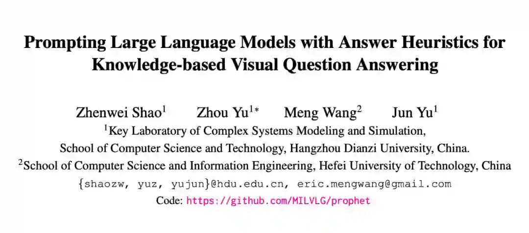 我们近期的论文给出了一个新的答案:用好小模型!论文 Prompting Large Language Models with Answer Heuristics for Knowledge-based Visual Question Answering 提出了名为 Prophet 的框架,通过在 LLM 上游引入一个可学习的、任务相关的视觉问答小模型,来更好地激发大模型的潜力。