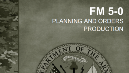 FM5-0《规划和指令的制定》是陆军计划的综合参考手册。它概述了规划的基本原理,并详细介绍了规划行动的各种方法。它是陆军解决问题、军事决策过程、部队领导程序、评估规划以及陆军规划和指令格式的理论来源。