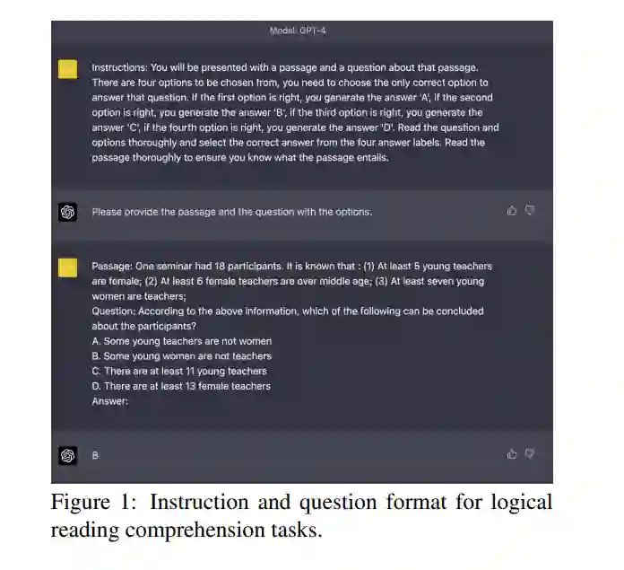 随着最近几个数据集的发布,逻辑推理NLP研究重新获得了势头,特别是LogiQA和Reclor。数据集来自中国公务员考试和法学院入学考试(LSAT)等逻辑推理考试。这些测试即使对人类来说也是具有挑战性的,并且是高质量的Golden标记数据。逻辑推理被用于大型预训练语言模型(PLM)的许多探测任务和问答和对话系统等下游任务中。与传统基准相比,PLM表现不佳。尽管到目前为止取得了进展,但在NLU系统中实现类似人类的逻辑推理能力仍然是一项具有挑战性的任务。生成式预训练Transformer 4 (GPT-4) (OpenAI, 2023)以及ChatGPT是OpenAI新发布的语言模型,旨在理解和生成多模态内容。GPT-4在需要逻辑推理的任务中具有更强大的能力。逻辑推理对人类的智能至关重要,它使我们能够根据给定的信息得出结论、做出预测并解决问题。将逻辑推理纳入到语言模型中,如GPT-4,可以彻底改变自然语言理解(NLU)系统,使其更准确,更鲁棒,并能够理解自然语言中的复杂信息。