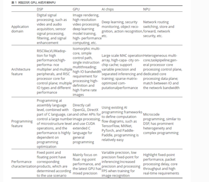 针对专用处理器有很多关键问题, 包括: 芯片在架构上有什么差异, 各自具备什么样的软件生态, 能否取得商业上的成功的决定性因素是什么等, 而答案也莫衷一是. 本文的重点是试图从架构层面去 看待这些不同类别的专用处理器芯片的差异, 帮助我们预测未来架构的发展趋势, 对于专用处理器技 术未来的发展做了些许开放性的讨论, 抛砖引玉. 其次, 本文主要讨论经典专用处理器的演化, 而把通 用 CPU 的发展作为背景而暂不加以专门讨论. 同时, 本文主要以 DSP、GPU、AI 芯片和 NPU (网络 处理器) 为主要参考对象, 其中 DSP 以 TI 公司的 C6000 系列为主要参考, GPU 以英伟达 (Nvidia) 公司的 Tesla 架构为主要参考 [4] , AI 芯片以寒武纪的 DianNao [5] 深度学习处理器和 Google 公司的 TPU (tensor processing unit) [6] 为主要参考, NPU 以迈络思 (Mellanox) 公司 (已经被 Nvidia 公司收 购) 的 NP-5 和因特尔 (Intel) 的 IXP [3] 为主要参考, 均为各个公司比较有代表性的产品. 限于篇幅, 本文尚未将新出现 DPU (data processing unit) [7] 芯片架构纳入讨论, 相关内容将作为未来工作.