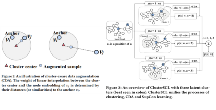 本文认为所有正样本对都是有价值的,但不直接拉近正样本对或推远负样本对,而是设计了cluster-aware data augmentation(CDA)作用于每个anchor的真实正负样本,使生成的虚拟正负样本既包含原正负样本的信息,又更加靠近anchor所在的聚类。通过CDA,监督对比学习在一个更加集中的空间中进行,间接削弱了anchor和其原始正负样本之间的拉推力度,从而避免过度改变图中节点的聚类分布情况。进一步,我们设计了Cluster-Aware Supervised Contrastive Learning(ClusterSCL),通过概率模型统一了软聚类,CDA和监督对比,使三者能互相影响促进。CLusterSCL的具体优化方式请参考原文。