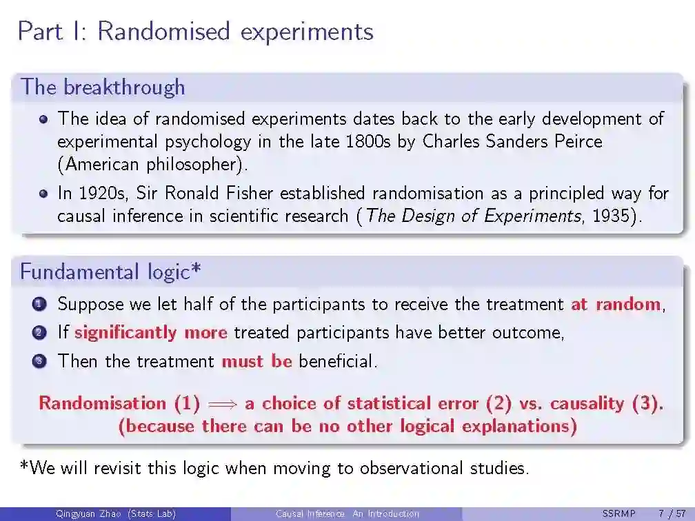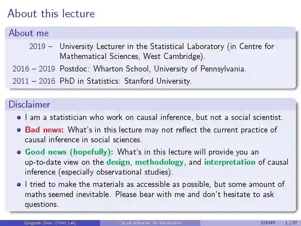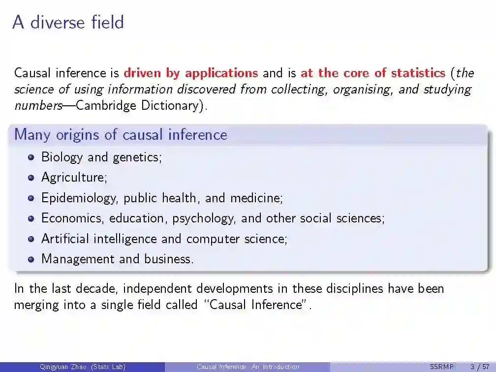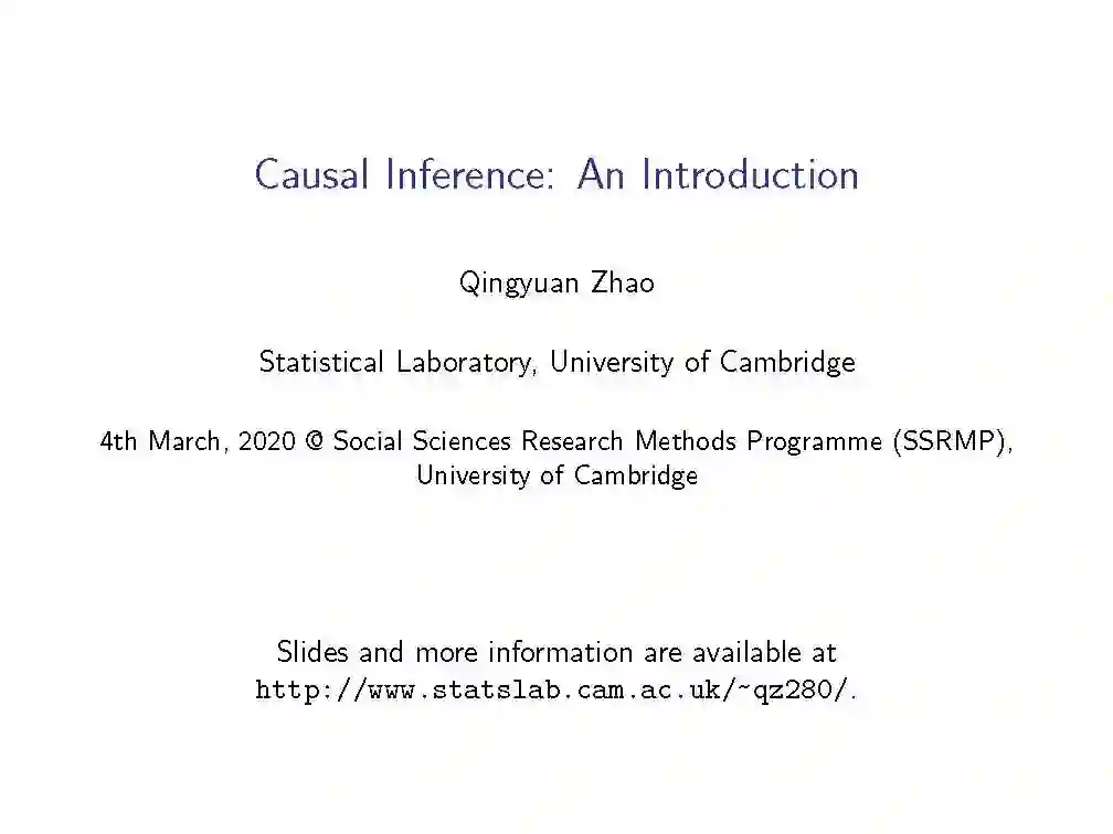 数十年来,因果推理是一个跨统计、计算机科学、教育、公共政策和经济学等多个领域的重要研究课题。目前,与随机对照试验相比,利用观测数据进行因果关系估计已经成为一个有吸引力的研究方向,因为有大量的可用数据和较低的预算要求。随着机器学习领域的迅速发展,各种针对观测数据的因果关系估计方法层出不穷。来自剑桥大学助理教授Qingyuan Zhao《因果推断导论》,51页ppt