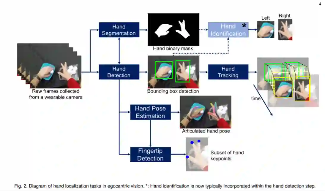 自我中心视觉(又称第一人称视觉- FPV)应用在过去几年里蓬勃发展,这要归功于可穿戴相机和大型带注释的数据集。可穿戴相机的位置(通常安装在头上)允许准确记录相机佩戴者在他们面前有什么,特别是手和操作对象。这种内在的优势使我们能够从多个角度来研究手:将手和手的部分定位在图像中;了解手所参与的动作和活动;开发依赖手势的人机界面。在这项调查中,我们回顾了使用自我中心视角关注手的文献,将现有的方法分为:定位(手在哪里或手的一部分在哪里?)解释(手在做什么?)以及应用程序(例如,使用以自我为中心的手势提示来解决特定问题的系统)。此外,还提供了带有基于手的注释的最重要数据集的列表。