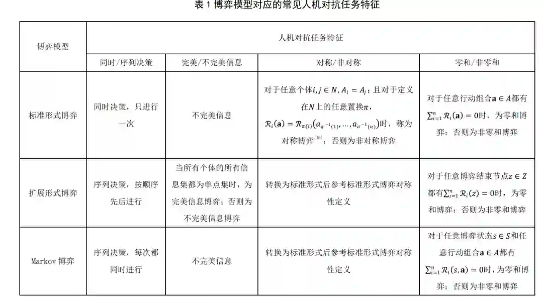 然而,虽然人机对抗智能技术领域目前取得了 一系列突破,博弈论与机器学习交叉方向的研究却 缺乏清晰的研究框架. 基于此,本文通过梳理人机 对抗智能技术领域的重要工作,介绍了人机对抗中 的博弈学习方法的内涵,总结了面向人机对抗任务 的博弈学习研究框架,包括其组成要素和基本步 骤,并利用该框架对人机对抗智能技术领域的典型 进展进行了分析. 本文作者认为,随着人机对抗智 能技术领域试验场景和测试环境逐渐接近真实场 景,场景的复杂性和对抗性急剧增加,结合现代机 器学习方法和博弈论的博弈学习方法将会在未来 人机对抗领域的发展中发挥越来越重要的作用。