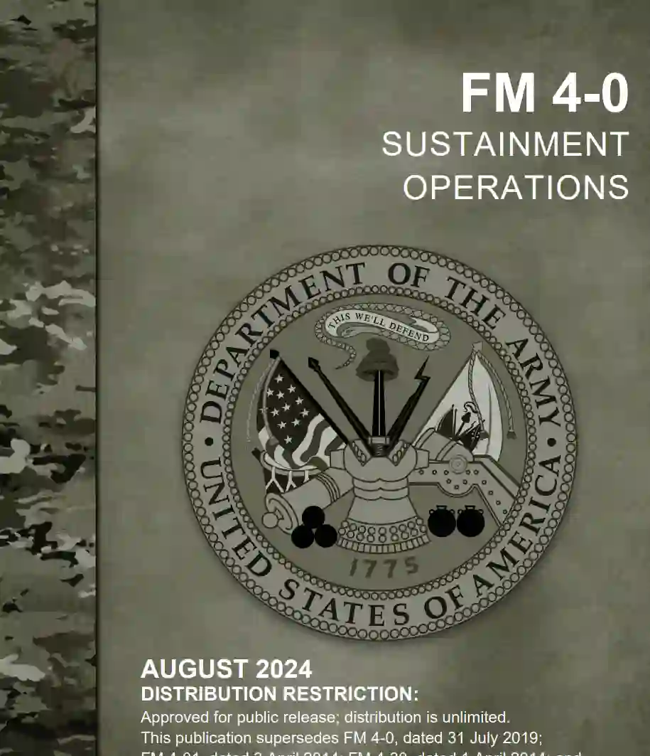 2022 年 10 月出版的 FM 3-0 将多域作战编纂为陆军的作战概念。FM 4-0 描述了支持陆军作战概念的持续作战行动,以及陆军如何支持联合部队执行战役。它是陆军在战区战略、作战和战术层面的持续作战行动的条令。该出版物强调持续作战的基本原理和战术,使所有指挥官、参谋人员和士兵了解持续作战行动。FM 4-0 的内容与 ADP 4-0 中包含的主要维持条令一致,是陆军所有维持行动的条令基础。FM 4-0 描述了陆军及其组织如何开展持续作战行动,是陆军技术出版物(包括 ATP 4-91、ATP 4-92 和 ATP 4-93)中强化的主要陆军条令。