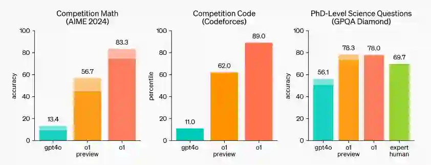 在国际数学奥林匹克(IMO)资格考试中,GPT-4o 仅正确解答了 13% 的问题,而 o1 模型正确解答了 83% 的问题。