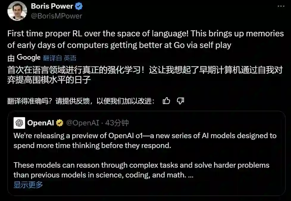 也就是从方法上,o1 大模型首次证明了语言模型可以进行真正的强化学习。