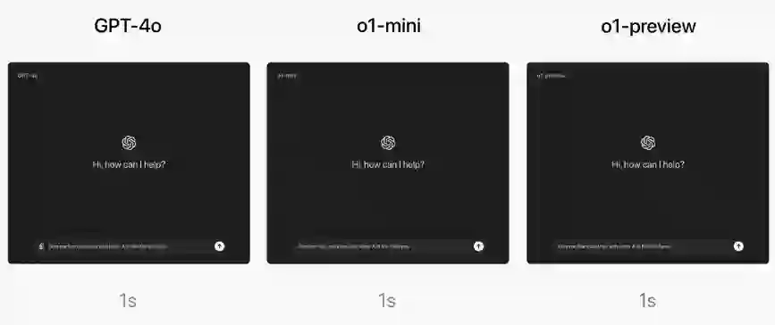 在速度层面,OpenAI 比较了 GPT-4o、o1-mini 和 o1-preview 对一个单词推理问题的回答。结果显示,GPT-4o 回答不正确,而 o1-mini 和 o1-preview 均回答正确,并且 o1-mini 得出答案的速度快了大约 3-5 倍。