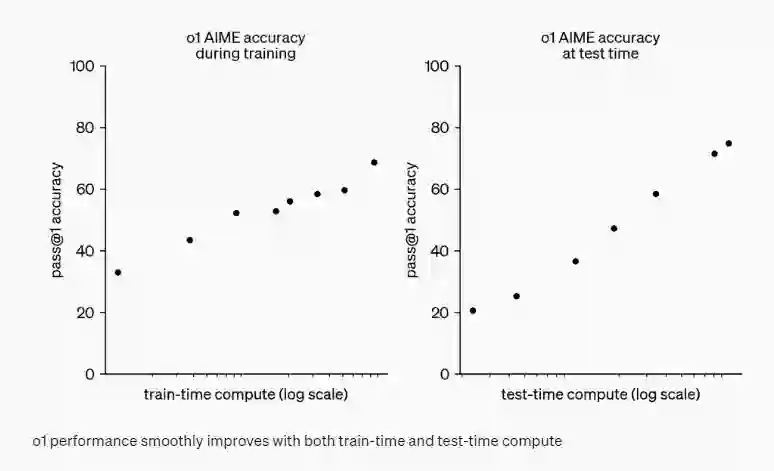 OpenAI 发现,随着更多的强化学习(训练时计算)和更多的思考时间(测试时计算),o1 的性能持续提高。而且扩展这种方法的限制与大模型预训练的限制有很大不同,OpenAI 也还在继续研究。