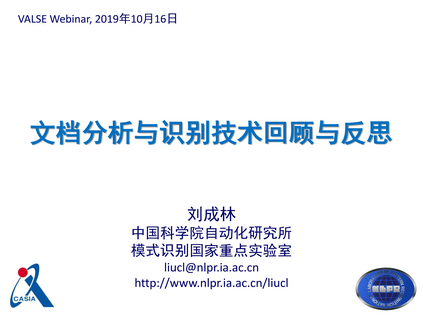 报告嘉宾:刘成林(中国科学院自动化研究所) 报告时间:2019年10月16日(星期三)晚上20:30(北京时间) 报告题目:文档分析与识别技术回顾与反思