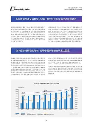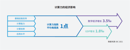 来源:IPF 2022 时间:2022-03-22 17:24:45 统计显示,2020年,我国数字经济核心产业增加值占国内生产总值(GDP)比重达到7.8%。到2025年,这一比重预计将达到10%。而在推进数实融合的过程中,算力作为数字经济时代的关键生产要素,也成为挖掘数据要素价值、推动数字经济发展的核心支撑力和驱动力。 日前,由国际数据公司IDC、浪潮信息、清华大学全球产业研究院联合编制的《2021-2022全球计算力指数评估报告》在北京发布。该报告量化揭示了全球主要国家GDP、数字经济与计算力之间的关联性和相互拉动作用。报告显示,计算力指数平均每提高1点,数字经济和GDP将分别增长3.5‰和1.8‰。