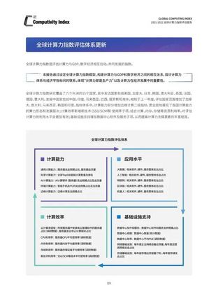 这是《全球计算力指数评估报告》第二年发布,研究范围覆盖六个大洲的15个国家,从计算能力、计算效率、应用水平和基础设施支持四个维度对各国计算力水平进行全面评估,并从统计数据角度、经济理论角度分别阐述了算力对经济增长的影响,得出十大洞察。