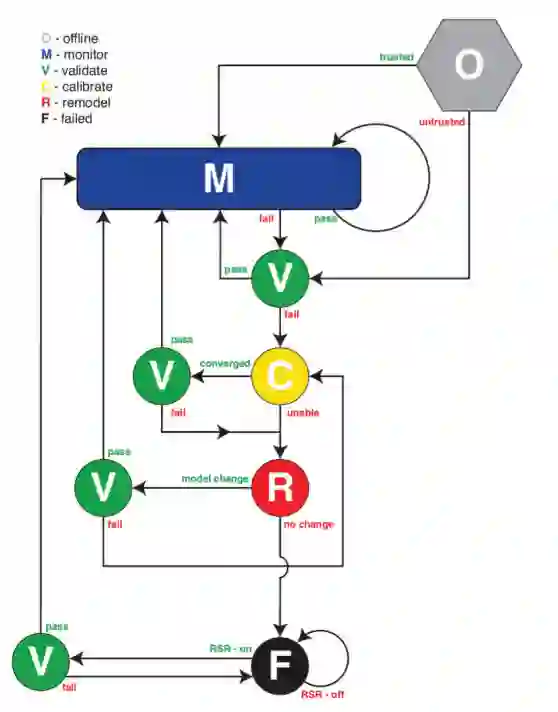 图 1 ARMAS 框架状态图(Jurado & Raquet,2019):传感器从 O 点(原点)开始,可以信任或不信任。 SAARM 和新贡献的 SOM 位于监控 (M) 模式中。