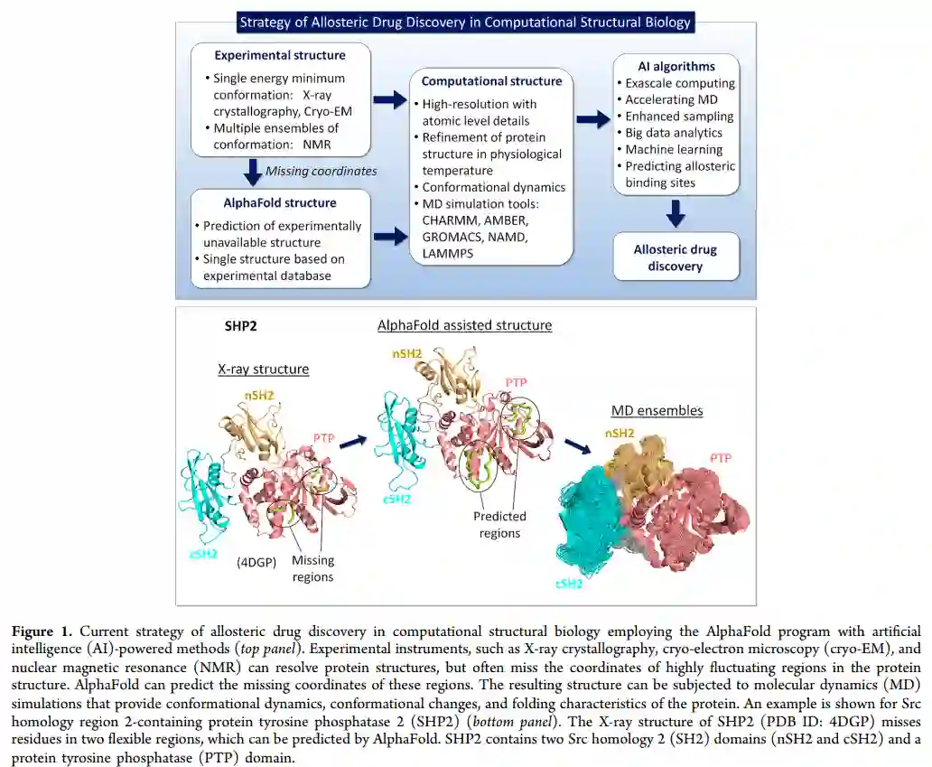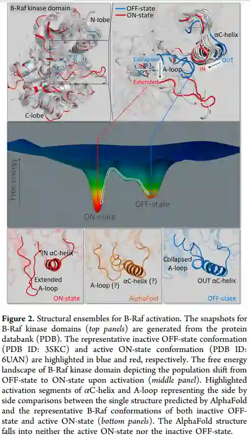序列-结构-功能教条是一代人的试金石。它主导了分子生物学几十年。它是由物理化学家提出的,他们解释说,生物大分子在折叠的时候会发挥作用。因此,要了解分子的功能,就需要考虑它们的三维结构,这种变革性的范式成为现代生物学的一个原则。今天,人们普遍认识到,僵硬的分子不能发挥功能,从而使人们认识到,为了维持生命,分子的灵活性是一种必要。然而,这还没有完全转化为对能量景观这一强大概念的理解。也就是说,生物大分子是动态物体,总是在各种具有不同能量的结构之间相互转换,这就是变构机制的起源。这种作为构象间相互转换的柔性概念对于理解生物过程及其调控至关重要,如蛋白质的激活是系综体从非活性状态向活性状态的转变,变构药物如何发挥作用,细胞信号传递,以及通过构象选择而非诱导契合的结合机制。从经典的结构-功能范式到生物分子功能和变构机制的动态能量景观的概念演变,对AlphaFold的强大预测能力提出了挑战。为了理解生物调控,应通过蛋白质组合的种群和相对能量将结构与功能联系起来,这也是变构的基础。尽管AlphaFold的预测具有变革性的力量和巨大的广泛影响,但它无法直接解决这个问题。