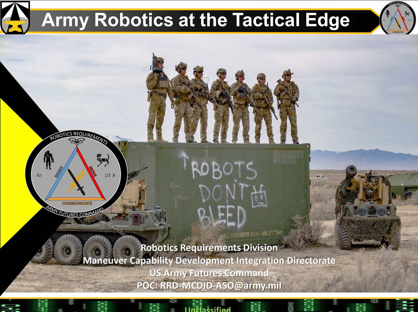 - 10X 23/24 Trust: 将人工智能和机器人能力整合到机动部队的实验活动,并为机器人支持的机动 ICD 提供信息