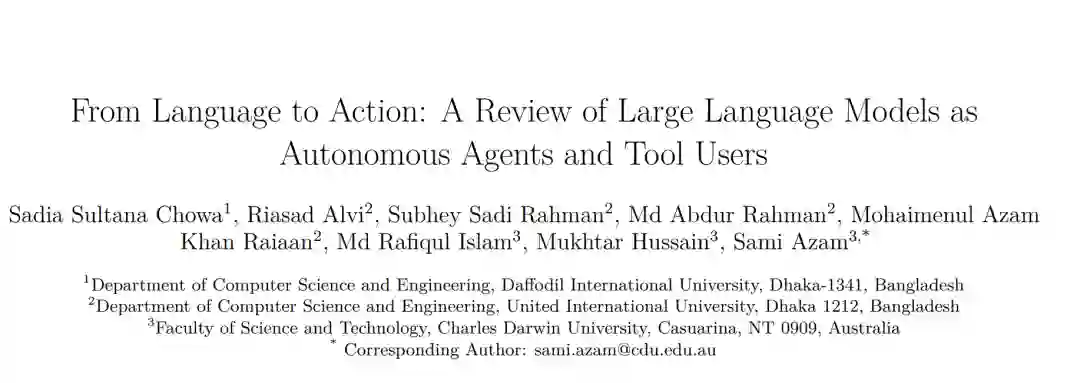 大语言模型(LLMs)因其在人类语言理解、生成与推理方面展现出的类人能力,已成为人工智能(AI)研究的核心 [1, 2]。最初,LLMs 主要作为工具,用于在更大应用体系中充当文本生成器或理解模块。然而,诸如小样本提示 [3]、链式思维(CoT)提示 [4] 和自提问提示 [5] 等方法展示了如何通过智能化的提示与输入模式设计进一步释放 LLMs 的潜力。 超越传统自然语言处理(NLP)任务,LLMs 现已作为自主智能体与智能工具应用于越来越复杂的工作流中,在其中承担规划、决策与工具交互的角色。这些应用涵盖研究辅助 [6]、软件开发 [7]、药物发现 [8]、多机器人系统 [9]、临床支持 [10]、游戏模拟 [11] 和科学仿真 [12] 等多个领域。 作为智能体,LLMs 能够感知环境、进行决策并采取行动。在这一范式下,单智能体 LLM 系统已在决策任务中展现出令人鼓舞的性能。例如 Reflexion [13]、Toolformer [14] 和 ReAct [15] 等系统展示了模型如何在包含规划、记忆与工具使用的决策循环中运行。然而,这类系统往往在动态环境下表现不足,难以应对同时进行的上下文追踪、外部记忆整合与自适应工具调用 [16, 17]。 为克服这些局限,多智能体 LLM 系统的概念逐渐受到重视。在此类系统中,多个 LLMs 作为专门化的智能体协作,每个智能体具有不同角色或目标,通过合作解决单一智能体难以完成的复杂任务。借助结构化通信、反思性推理与显式角色分配,多智能体 LLMs 在模拟环境中展现了诸如共识构建、具备不确定性意识的规划以及自主工具交互等能力 [18–20]。典型示例包括 MetaGPT [21]、CAMEL [22]、AgentBoard [23]、AutoAct [24] 与 ProAgent [25],它们展示了合作型智能体如何执行角色特定的指令并协调计划;而 Generative Agents [26] 则模拟了交互式环境中的类人行为。 此外,LLMs 作为智能体与工具展现出巨大的潜力,对其不断演化的角色的理解需求也在快速上升。因此,系统性综述其最新进展、讨论尚存不足,并提出未来研究方向,对于推动该领域发展具有重要意义。基于此,本文旨在提供一个全面且结构化的综述,涵盖当前能力与系统设计。我们将探讨支持 LLM 智能体行为的体系结构基础,分析其与外部工具的交互方式,讨论现有方法的主要局限,并突出现存的开放挑战。通过本综述,我们希望勾勒出这一新兴领域的研究图景,并为未来研究与发展奠定坚实基础。 本文的主要贡献总结如下: