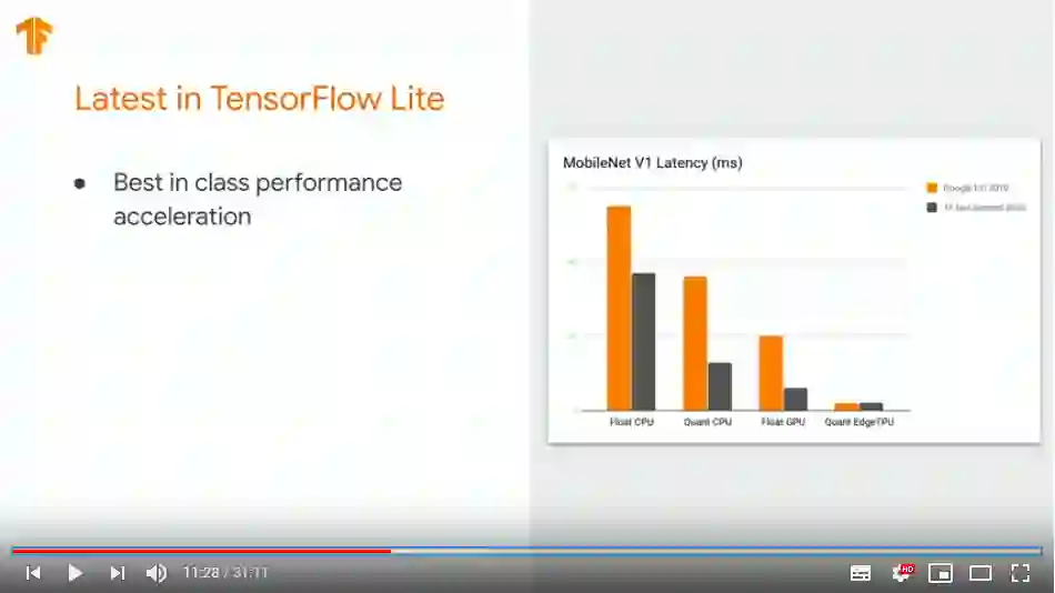 最新版本的TensorFlow Lite相对于Google I/O 2019时又有了更进一步的性能提升: